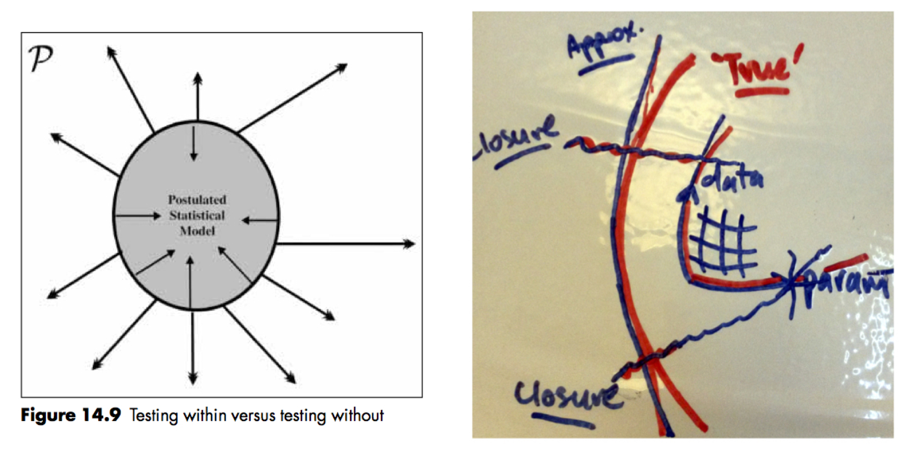 Since I motivated this problem with reference to Mayo’s blog, how might the ‘severe testing’ concept relate? For now, a quick thought: if by ‘test’ we mean ‘behaviour under specified experimental manipulations‘ then we see some similarity. In particular, one might imagaine that the ‘testing’ aspect refers to defining boundary conditions and related behaviour under possible (‘counterfactual’ or ‘virtual’) boundary manipulations, which is a crucial part of the ‘model closure’ account here.